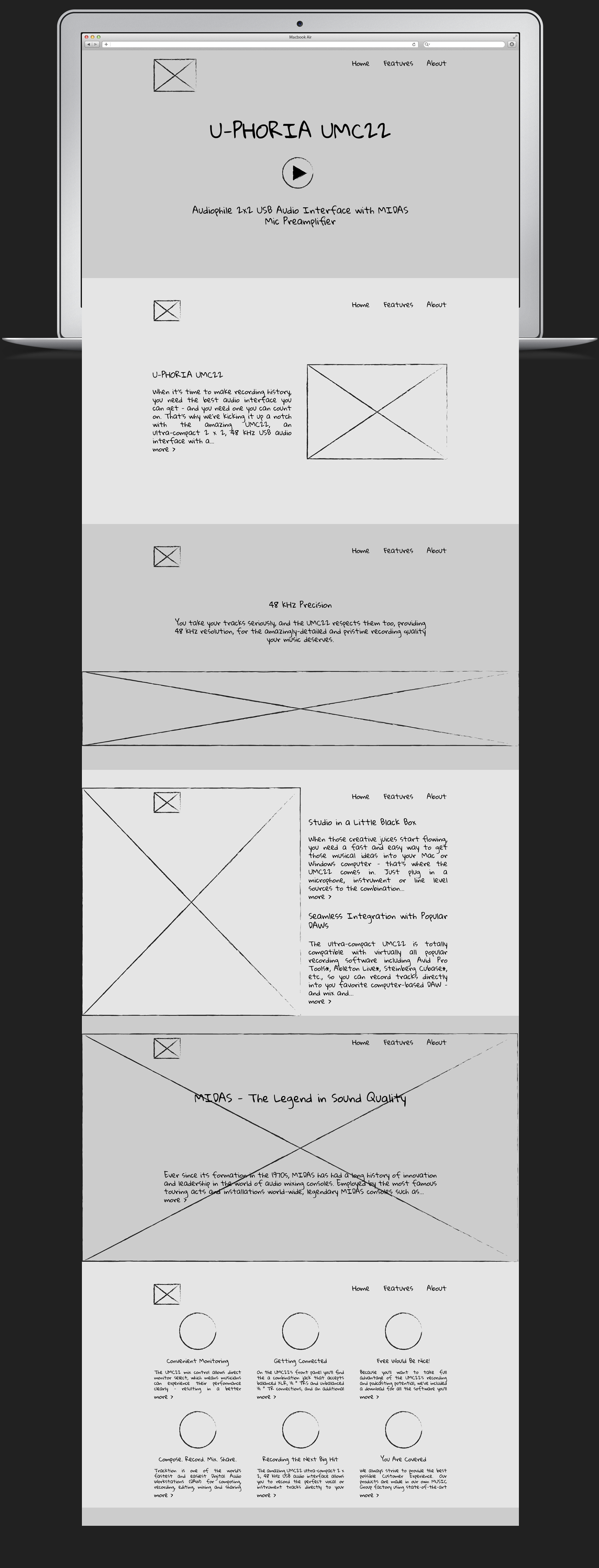 Description: A one-page promotional site redesign for the Behringer U-Phoria UMC22 audio interface.